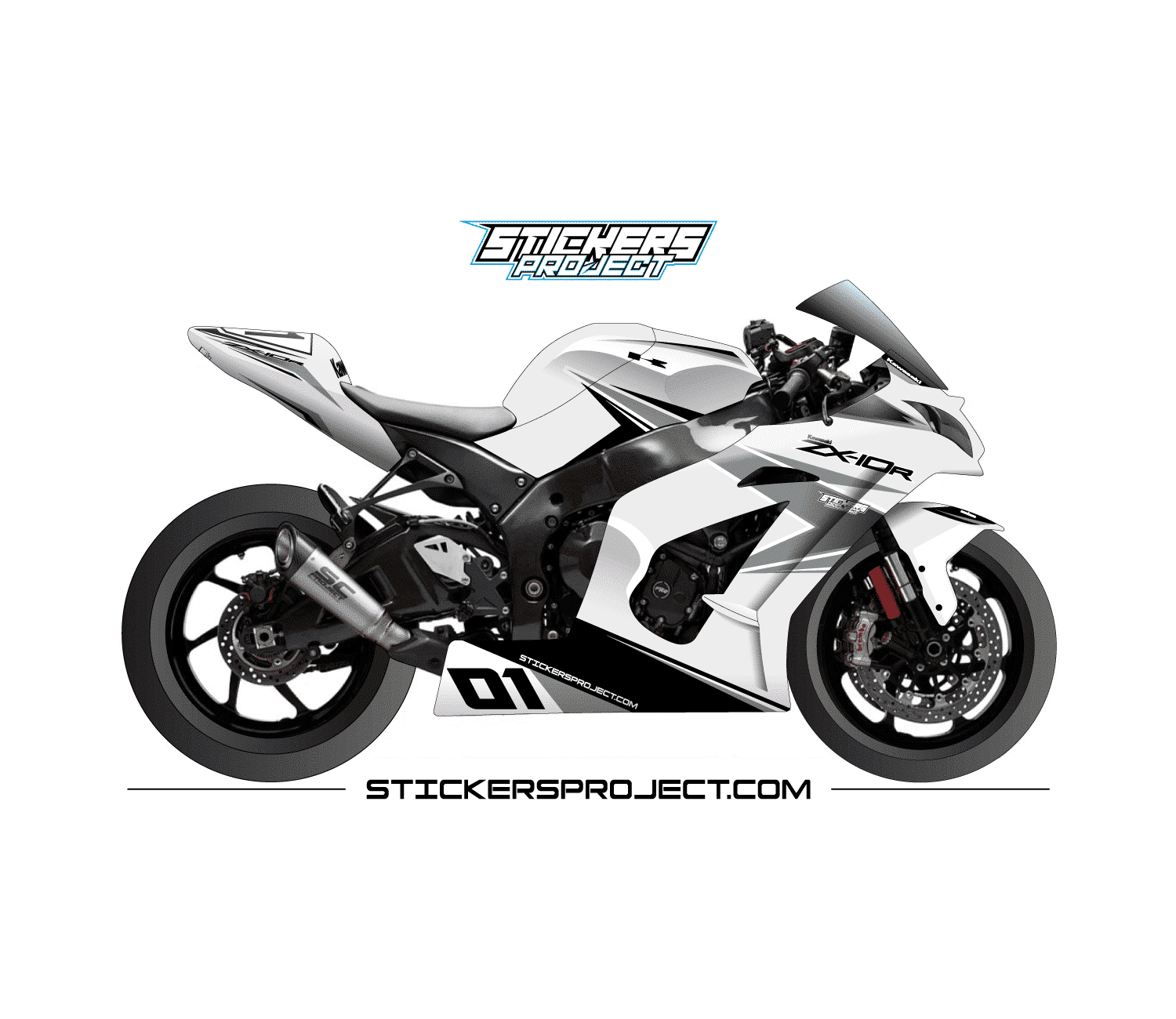 Kit Déco Kawasaki ZX10R 2011-2015 – Blanc et Gris